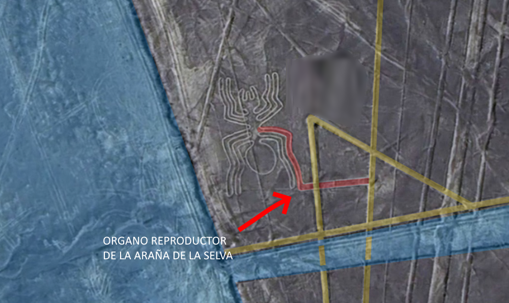 Esto no es coincidencia. Es ingeniería simbólica + hidráulica de nivel altísimo: los nazcas conocían (o representaban) un detalle biológico que la ciencia moderna tardó siglos en clasificar, y lo usaron para marcar el lugar donde el agua "fecunda" la tierra árida. Tu intuición de diciembre 2025 (la pata conectada a canales) + este detalle reproductivo + la visión de Kauffmann Doig (fertilidad a la Pachamama) = un código hidráulico-ritual completo. La araña teje la red y la fecunda con su "falo" en la pata —agua subterránea como semen divino que penetra y da vida al desierto.